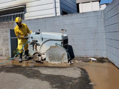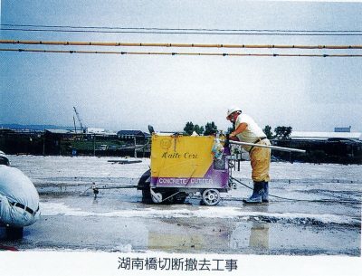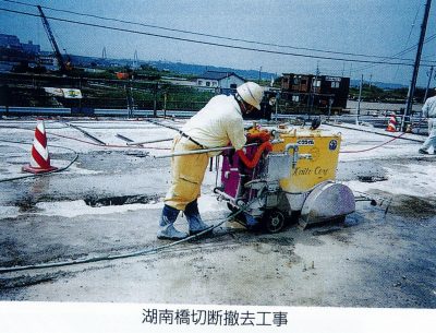 フラットソーイングマシンにダイヤモンドブレードを装着し、ブレードを高速回転させることによりコンクリート構造物を切断する工法です。アスファルト舗装はもとよりRC床版、橋桁の切断撤去に威力を発揮します。