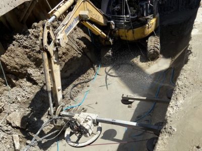 この機械は、油圧駆動式ですので低騒音、低振動、粉塵による公害の心配もありません。